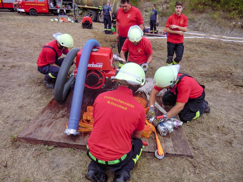 Burgkemnitz belegte den 4. Platz mit einer Zeit von 34 Sekunden. Pouch mit 30 Sekunden erzielte Platz 3. Der Gastgeber Schmerzbach landete mit 27 Sekunden auf dem 2. Platz. Knapp, aber verdient hat die Mannschaft aus Schwemsal mit einer Sekunde Vorsprung das Siegertreppchen erklimmen können.